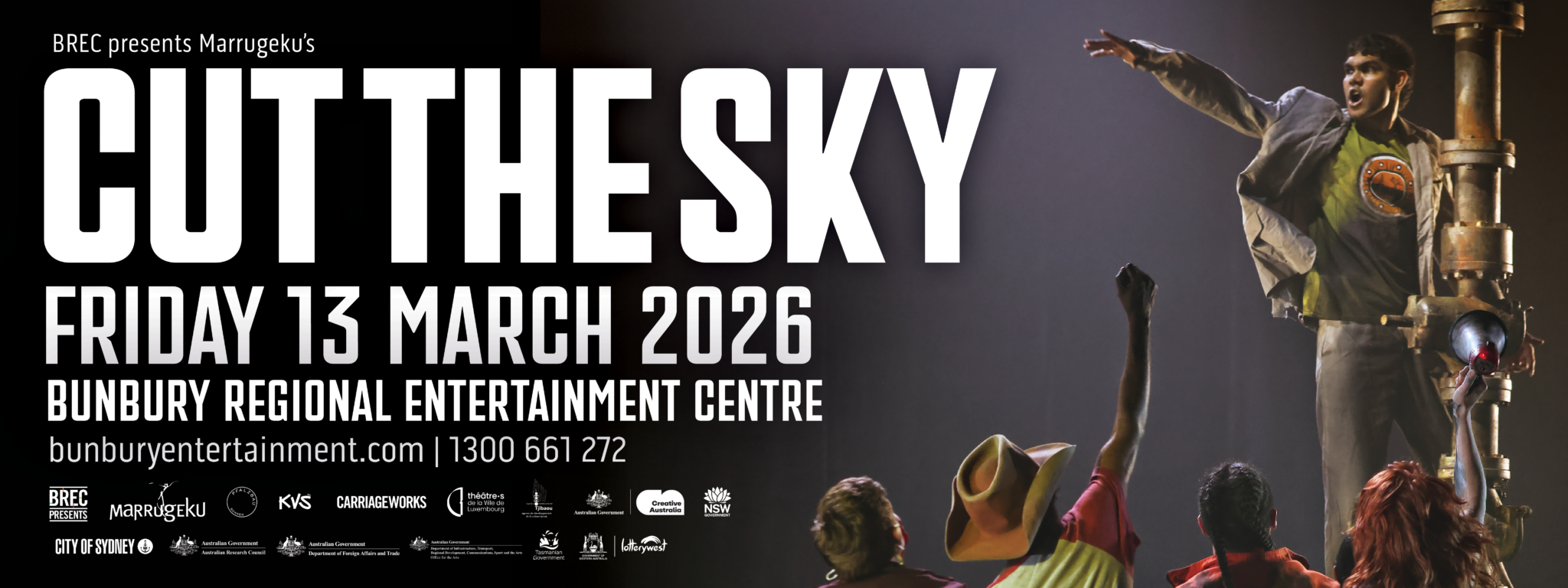 You are warmly invited to join us for Cut the Sky, an unflinching and evocative performance by Marrugeku, presented by Bunbury Regional Entertainment Centre.