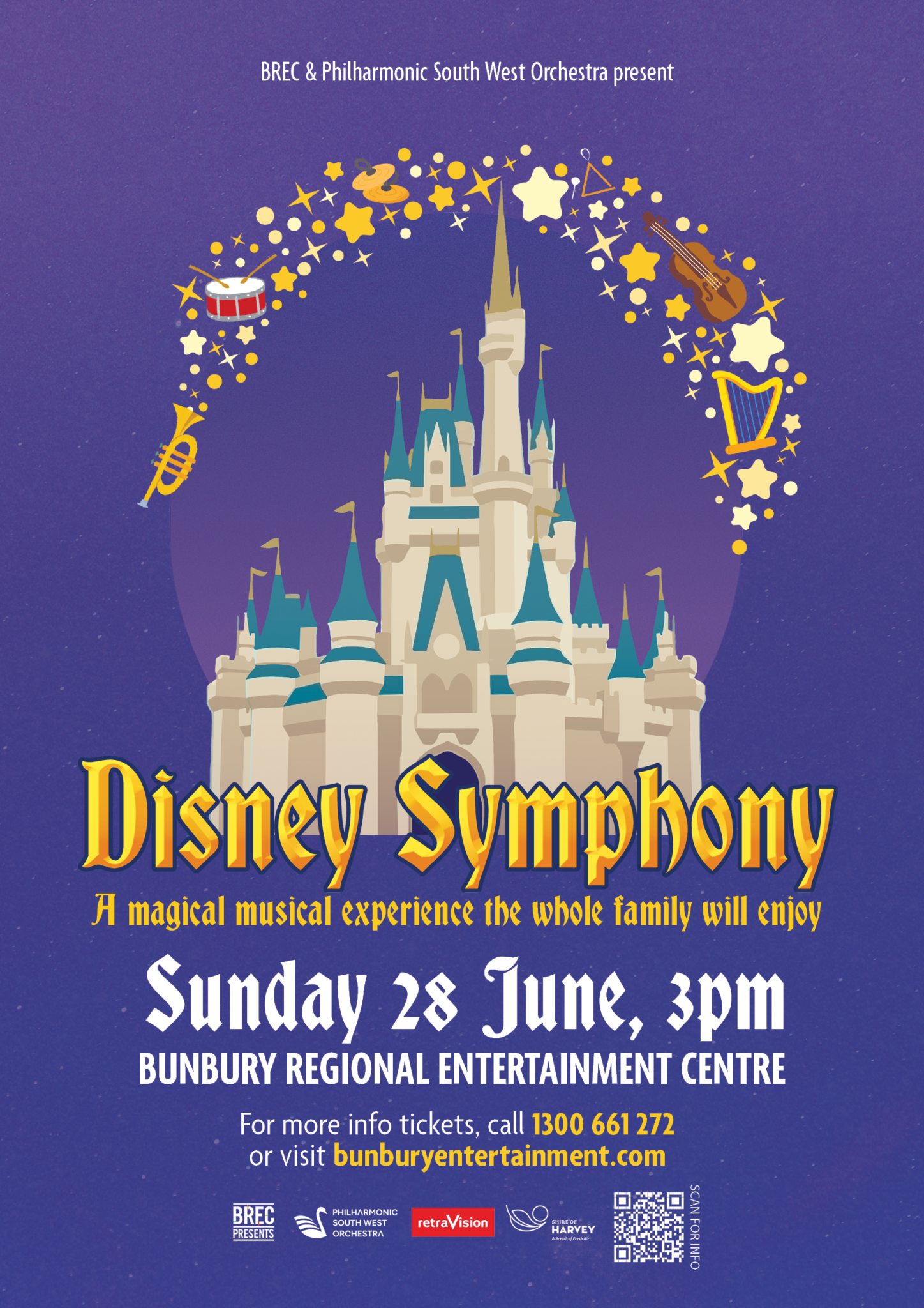 The Philharmonic South West Orchestra invites you to step into a world of imagination and adventure with a spectacular Disney Concert at the Bunbury Regional Entertainment Centre.