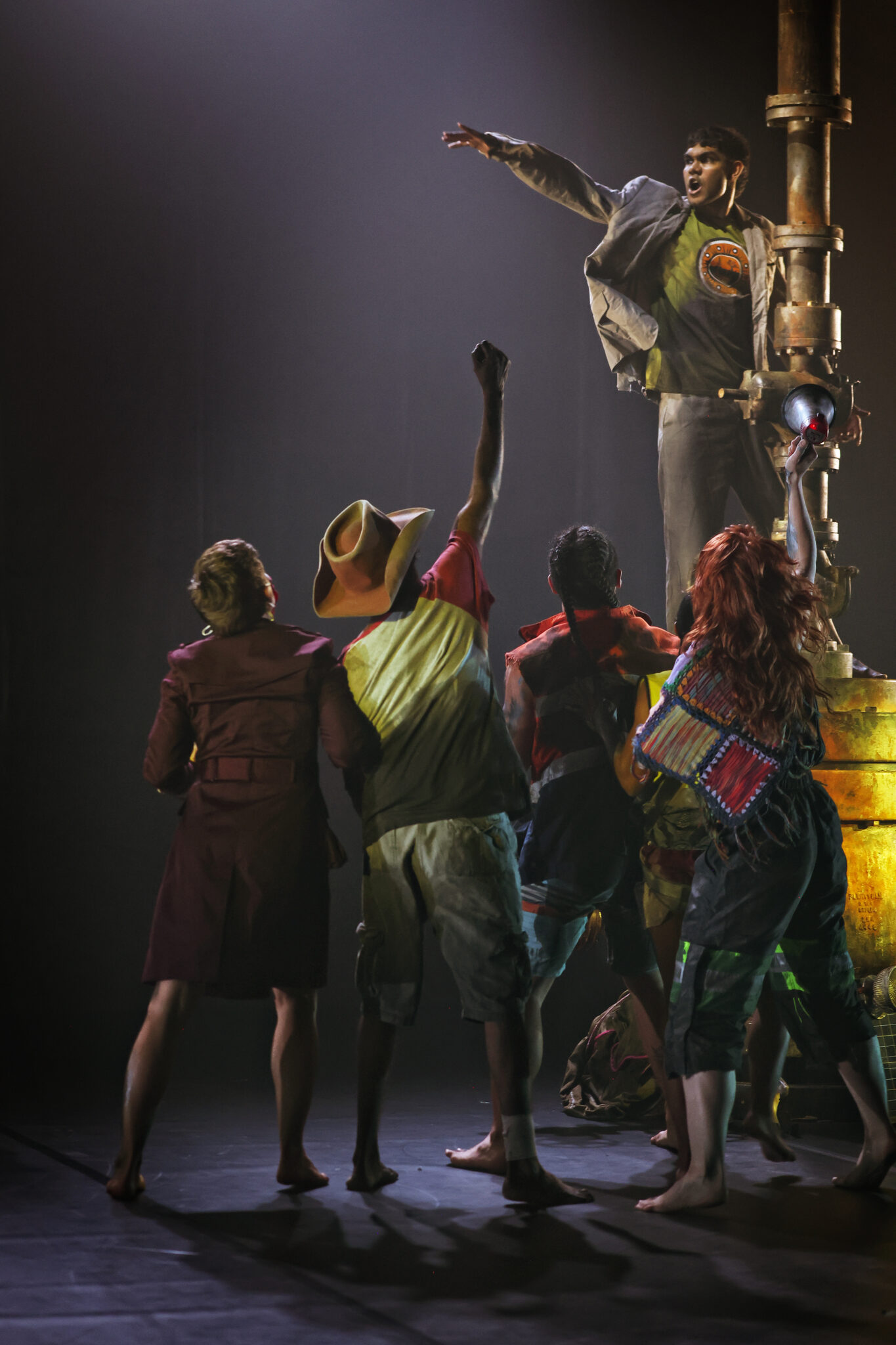 In Marrugeku’s raw and evocative work Cut the Sky, the earth is on the brink, poisoned by mining and the extraction of gas. A kangaroo-human is consumed by smoke, spiraling butterflies search for water while humans live precariously, unmoored in a dark, dystopian world. They seek shelter, survival and answers.