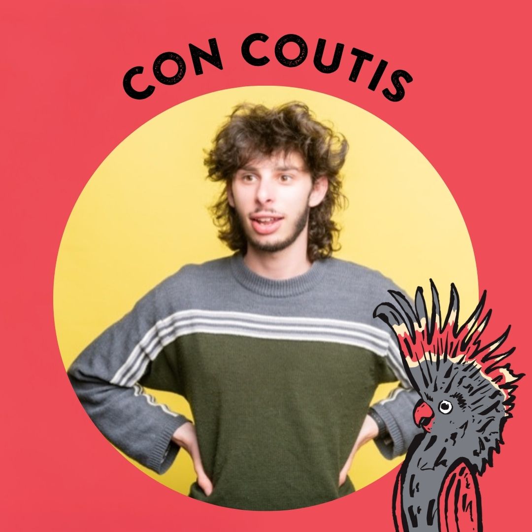 Fresh off opening for Aunty Donna, with appearances on Grouse House and Channel 10’s Talkin’ ’Bout Your Gen, Con Coutis is an award-winning comedian from Melbourne. His mix of stand-up and sound effects has seen his 2023 show “Con vs Con Vs Con” nominated for best independent show at the Melbourne International Comedy Festival and Best Comedy at the Melbourne Fringe Festival.