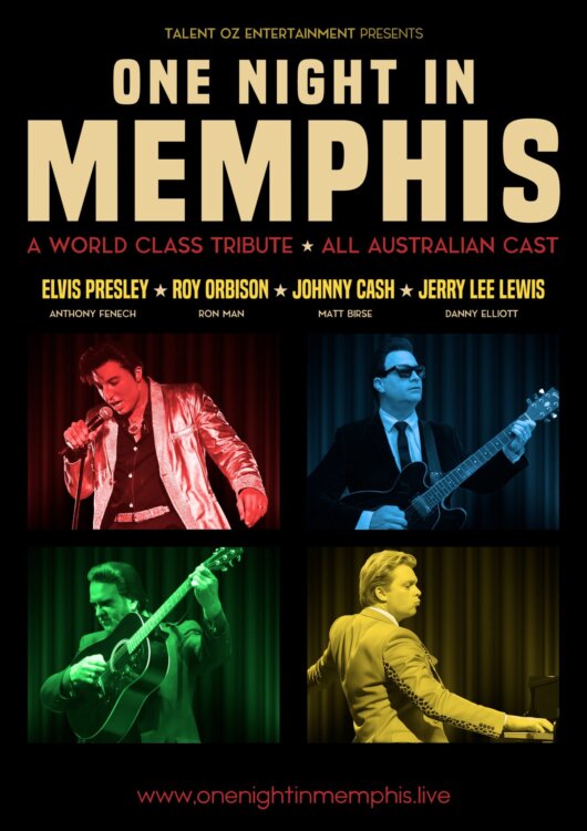 “One Night in Memphis” is the show that brings together 4 of the world’s greatest and most popular performers Elvis Presley, Jerry Lee Lewis and Johnny Cash showcasing the greatest Rock n Roll songs of the early years of the 1950s & 1960s. 2026 Also marks the 70th Anniversary of The Million Dollar Quartet getting together for an impromptu performance at Sun Studios so a special tribute will be featured in the show It has toured all over Australia to sell out performances over the last 3 years It features Four of Australia’s and Internationally renowned tribute artists together with a full 6 piece live band bringing to you over 2 hours of hit after hit from the early Memphis and Sun Records years through to some of their personal biggest songs including Elvis’s 68 comeback and early Vegas 70s.